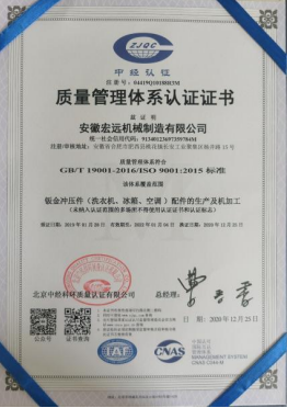 公司現有員工245余人,高級技術人員30人,高級管理人員15人,擁有精密的加工設備、科學的管理模式和優秀的企業文化。高素質的員工隊伍、精良的加工和檢測設備,為公司產品提供可靠基礎,2019年產值為24500萬元,預計2020年產值26000萬元。本公司的主要上游客戶為合肥美的暖通有限公司、惠而浦(中國)電器有限公司、tcl家用電器有限公司、重慶美的有限公司、海爾電器(章丘)有限公司等,我司和上游客戶達成了常年的合作關系,并先后被評為上游客戶的優質供應商。我司一直秉承誠信第一、以質取勝為宗旨。真誠的歡迎各界客戶與宏遠共同發展興旺。